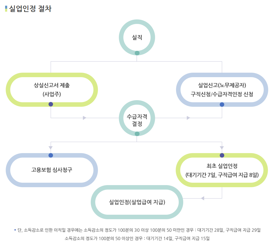 실업신고는 워크넷(Work-net)을 통해 인터넷으로 구직신청을 한 후 직업안정기관에 방문하여 수급자격인정신청서를 작성해 제출하면 되고, 신청 후 2주 이내에 수급자격 인정 여부를 결정해 통지받게 됩니다.