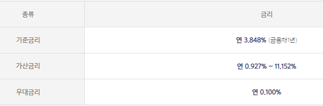 대출금리의 최종 결정은 기준금리에 가산 금리를 더하고 우대금리를 뺀 금리가 최종금리인데 이 상품의 우대금리 조건은 금융거래정보 제공 동의 시 0.1% 적용된답니다.