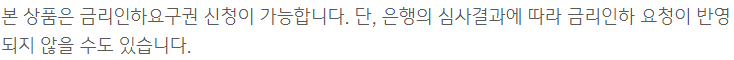 대출금리는 기준금리 + 가산금리 - 우대금리를 적요하며 최종 적용 금리는 실제로 신청해보아야 알 수 있습니다.