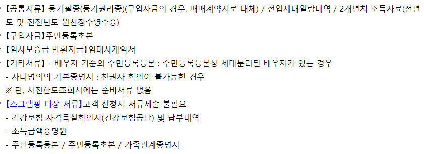대출관련 서류는 아래와 같습니다.