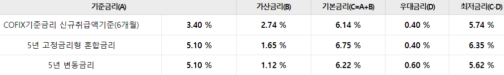 대출금리는 아래와 같습니다.