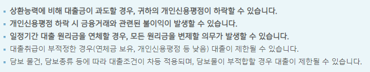 - 일시상환방식 :1년 이내(단 은행에서 정한 일정요건을 갖춘 경우 3년),기한연장시 처음 대출기간 포함 최장 5년까지 가능합니다.