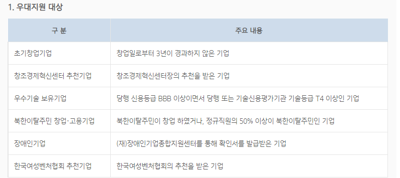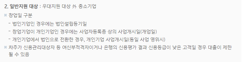 대출대상은 창업일로부터 7년이 넘지 않은 중소기업에 한해 가능합니다.