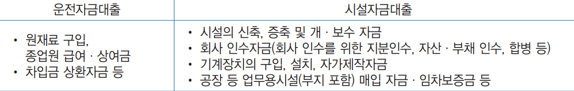 상품은 운전자금 및 시설자금으로 두가지로 되어있습니다.