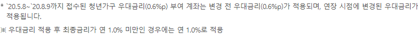 - 청년가구(만25세 미만 전용면적 60m2이하,보증금 7천만원이하,대출금 5천만원이하 단독세대주) 연 0.3%