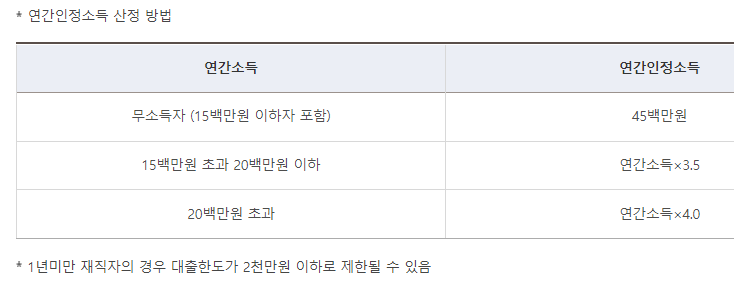 소득 : 대출신청인 및 배우자의 합산 총 소득이 5천만원이하인 자