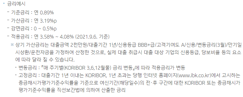 금리도 그렇게 높은편은 아니라서 운영자금이 필요하신 분들에게 적절한 상품으로 생각됩니다.