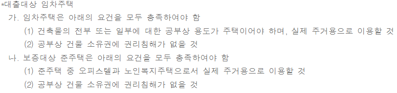 대출 진행이 가능한 임차 주택은 아래의 요건을 모두 충족해야 합니다.