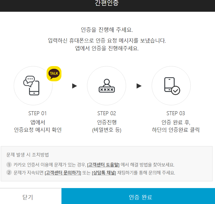 저는 카카오톡 인증서를 통해 진행하였습니다.