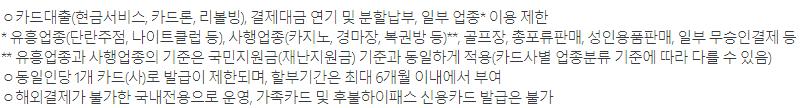 카드를 취급하는 카드사는 7곳으로 아래와 같습니다.