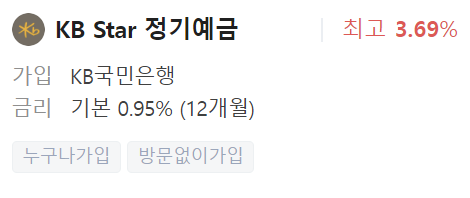 이 상품은 누구나 방문 없이 가입이 가능한 상품으로 국민은행의 대표 예금 상품입니다.