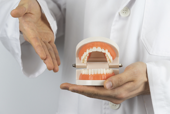1. 치과에서 상담을 받고, 틀니를 만들기 위한 치아와 잇몸의 모형을 채취합니다.