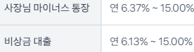 개인사업자대출은 두가지로 사장님 마이너스통장, 비상금대출로 나누어져있습니다.