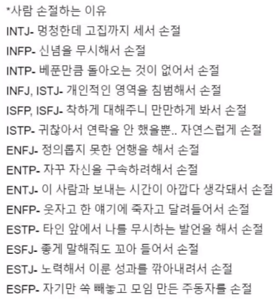 MBTI 유형별 재밌는 특징