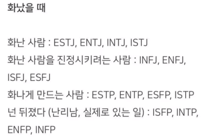 - 외향(E) - 외향(E)인끼리는 서로의 에너지를 공유하고 즐거운 시간을 보낼 수 있습니다. 하지만 너무 많은 활동에 흩어져서 깊이 있는 대화가 부족할 수 있습니다.