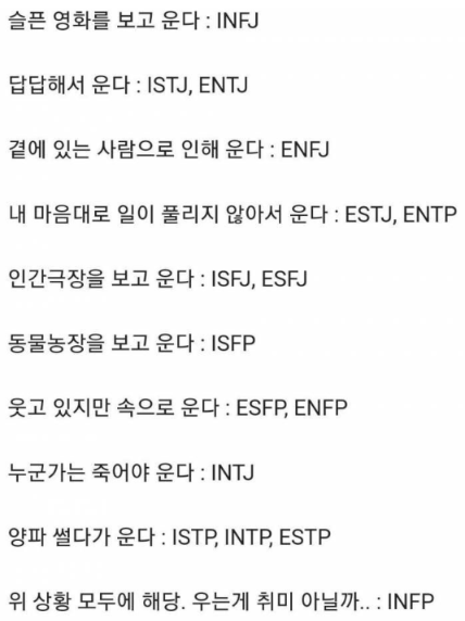 MBTI 유형별 재미난 특징