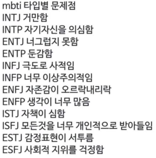 - ENTJ, INTJ, ESTJ, ISTJ 등 T 유형과는 갈등이 생길 수 있습니다.