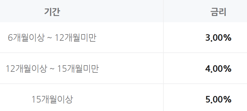 위 가입기간에 따라 달라지므로 최대한 빨리 가입하여 5%의 금리를 받는 것이 유리합니다.