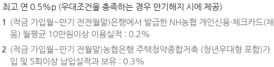또한 우대금리가 존재하며 우대금리 조건은 다음과 같습니다.