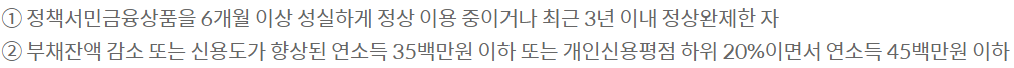 정책서민금융상품을 이용해보지 않았던 분들이라면 대출 조건에 해당되지 않으므로 아래 글 참고 바랍니다.