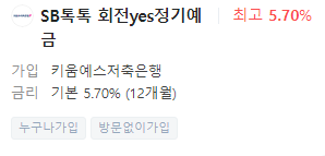 이 상품은 키움예스저축은행의 상품으로 마찬가지로 방문 없이 비대면으로 가입이 가능하며 기본금리가 최고금리인 상품입니다.