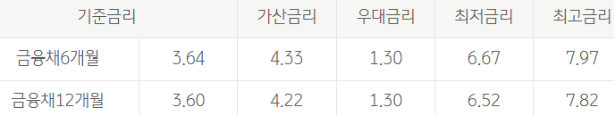 대출금리는 다음과 같습니다.