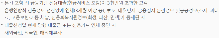 아래는 대출 제외대상입니다.
