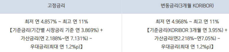 위 대출금리는 예시 금리로 최저 ~ 최고 금리 내에서 결정됩니다.