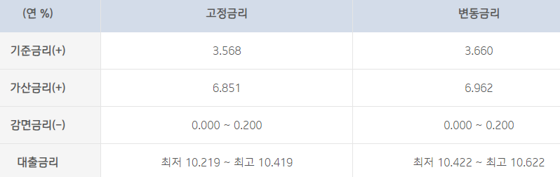 위 대출금리는 예시 금리로 실제 적용금리는 대출 신청자분마다 다릅니다.