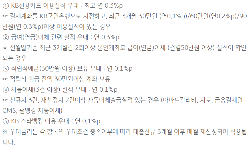 우대금리 조건은 다음과 같습니다.