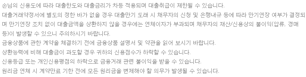 대출 진행 시 유의사항