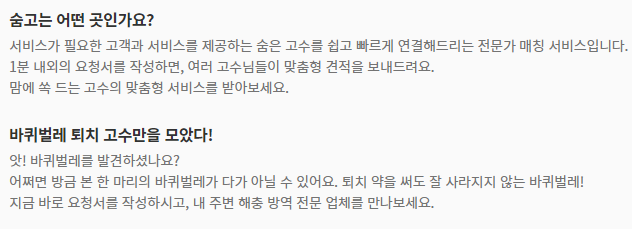 숨고는 숨은 고수라는 어플로 바퀴벌레를 퇴치하고자 할 때 여러가지 집의 환경(빌라, 아파트 ,주택 ,층 수 ,평형)등 을 고려하여 숨고에 견적서를 요청하면 사람들이 견적서를 바로바로 보내줍니다.