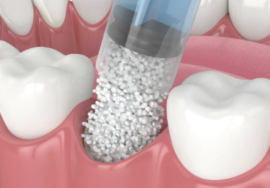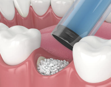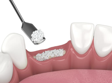 3. 치유 기간이 지나면, 잇몸을 절개하고 부족한 부분에 뼈이식재를 채워 넣습니다. 뼈이식재는 인공적인 재료나 동종 또는 자기의 뼈 등이 사용될 수 있습니다 .