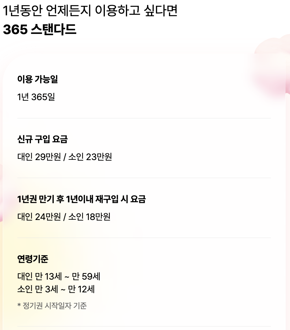 - 야간권: 오후 일정 시간 이후부터 폐장 시간까지 이용할 수 있는 티켓으로, 주로 저녁 시간대에 방문하는 사람들에게 유리합니다.