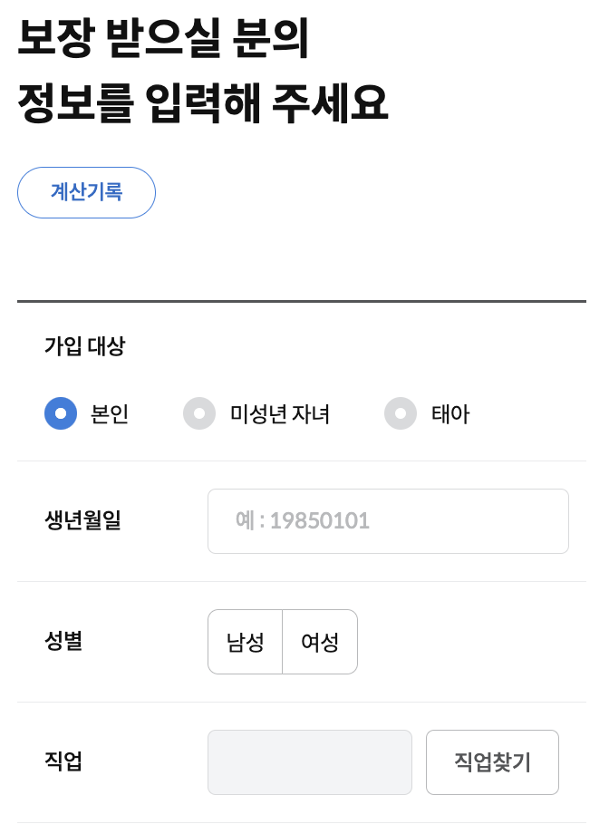 - 건강 상태 고지 (최근 입원·수술 여부 체크)