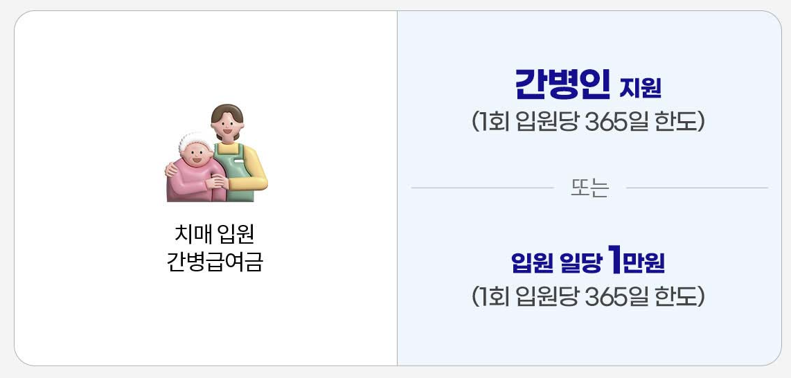 | 요양병원 입원일당 특약 | 일당 2~5만 원, 최대 180일 지급 |